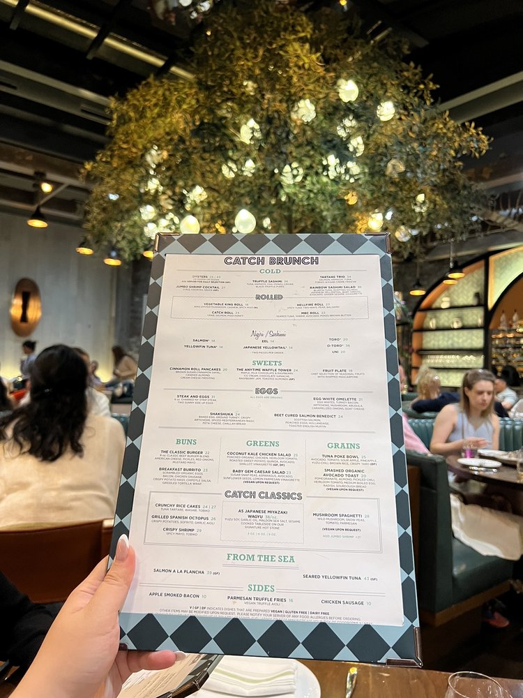 To satisfy your sweet tooth, indulge in the Cinnamon Roll Pancakes or the decadent Waffle Tower, layered with chocolate ganache. Whether you're dining at the bar or in a cozy booth, CATCH promises an unforgettable dining experience, amplified by its stunning decor and vibrant atmosphere.